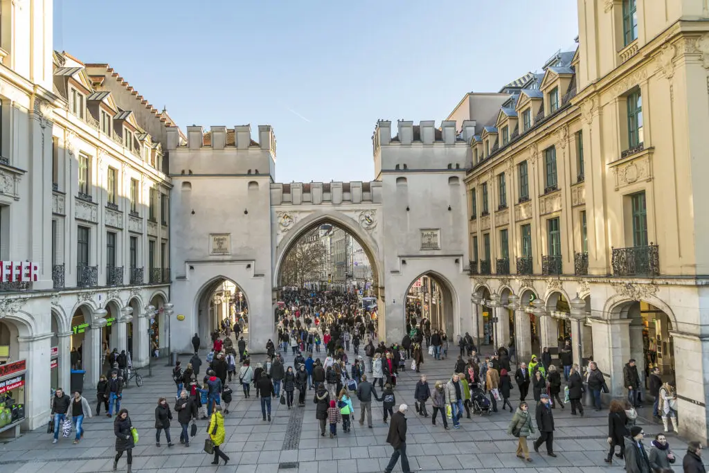 Karlstor frames the entrance to Neuhauser Straße, one of Germany’s busiest pedestrian shopping streets, and marks the transition from modern Munich to the historic Old Town.