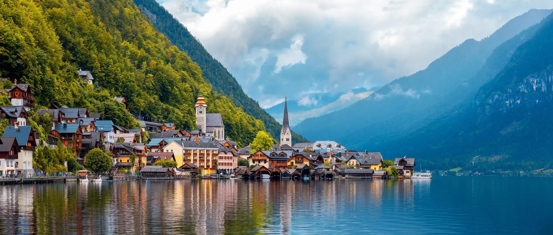 Begin with a relaxed walk through Hallstatt’s historic village center, where narrow lanes, colorful lakeside houses, and quiet squares reflect centuries of life shaped by salt, water, and mountains.
